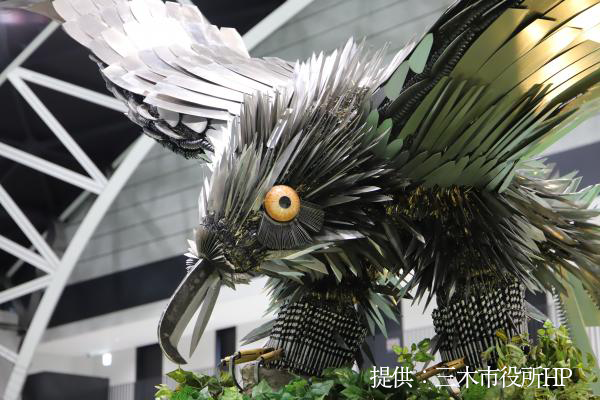 金属のきらめきと造形美が見事に融合した、まさに“飛翔する三木の象徴”です。